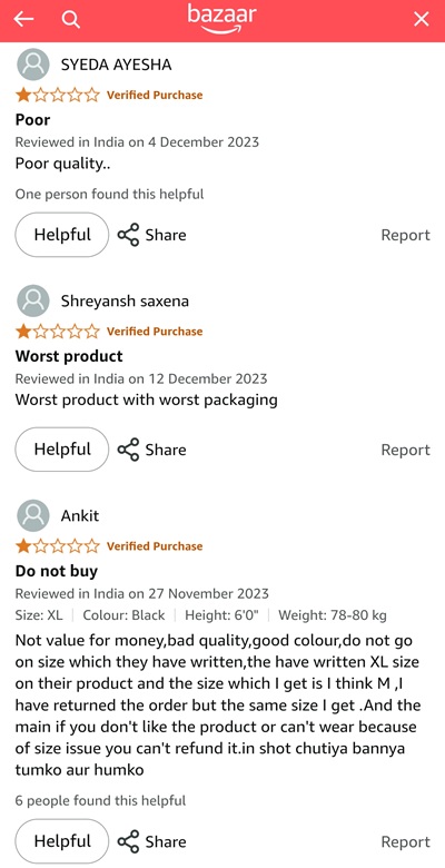 If you look at the products available in this bazaar section, their pricing and crucially the reviews, few things are clear. It seems they are trying to compete with Meesho.