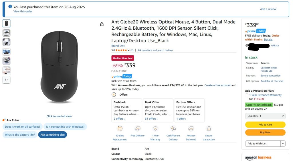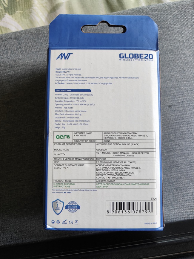 I was looking for a wireless mouse for my laptop. Recently launched ANT Sports Globe20 model caught my eye due to the extremely value for money price against the feature it had to offer.
