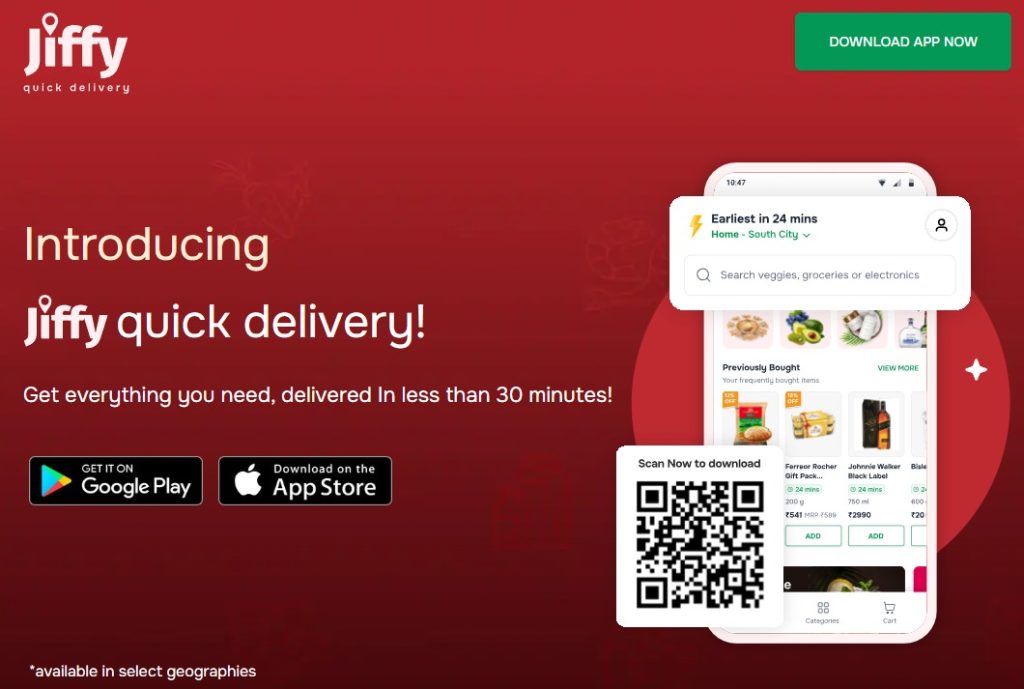 Jiffy is the name of their mobile application, available on android and iPhone offering quick commerce services. When ordered in Jiffy, delivery service is carried out from the nearest physical store.