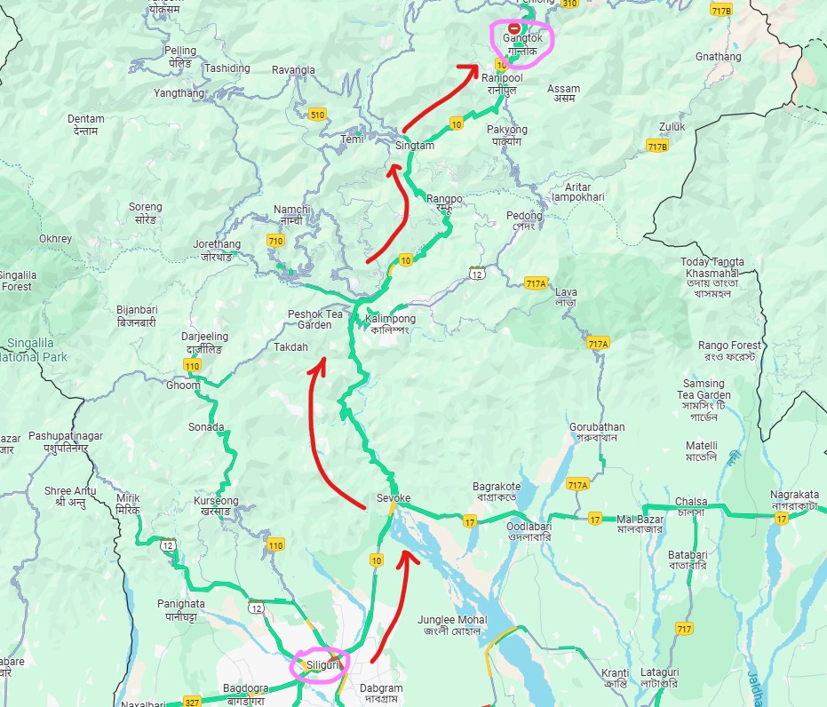 Experienced long distance drivers or long drive folks please note, it is possible to do Kolkata to Namchi without any night halt. However, attempt this only if you are a seasoned & experienced long distance driver and have plenty of experience of mountain driving. You may need to do night drive for Kolkata-Siliguri and them attempt this mountains section of Siliguri to Namchi at morning.