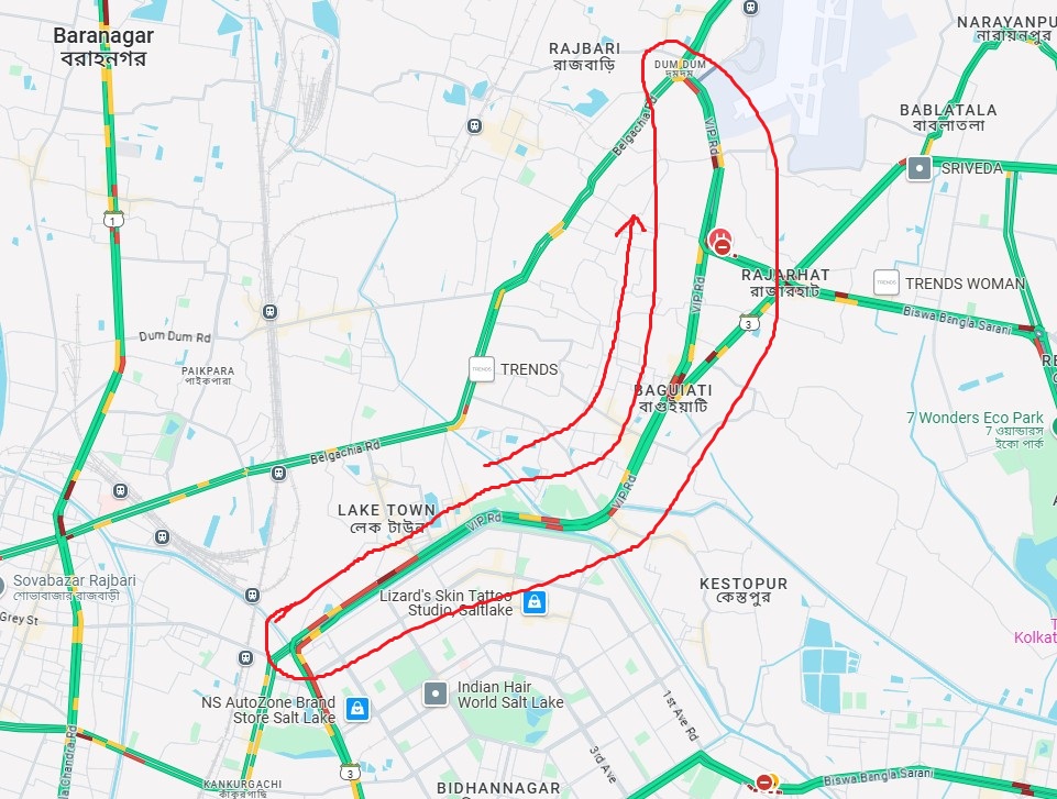 Kolkata is a metropolitan city, so many of us will be living at different places and parts of the city. North / South / East or West, wherever you are, ensure to take your preferred route towards VIP (AirPort / Kazi Nazrul Islam Sarani) road.