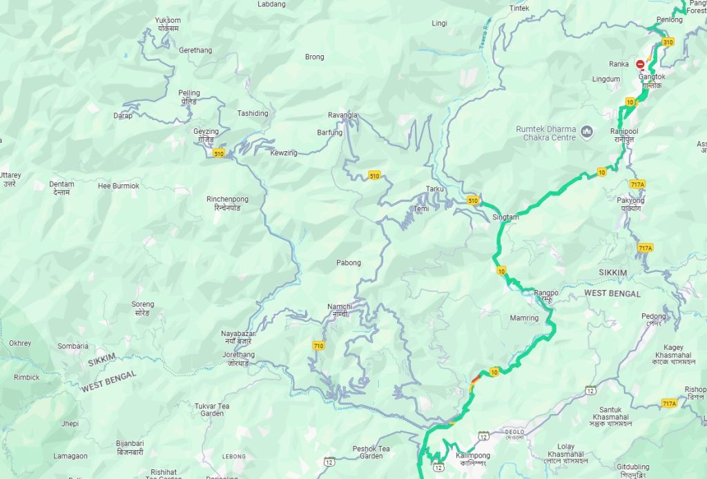 In case you are driving up from Siliguri, take the NH10 towards Gangtok (Refer to our route above) but right after Kalimpong, you should leave NH10 and use Melli bridge to cross into Sikkim via Melli Entry Point.