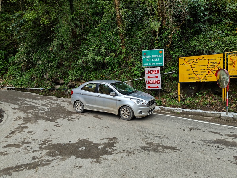 The road here splits in two, one direction towards Lachen and another towards Lachung. On your arrival date, as per itinerary, you are going to take the left turn towards Lachen.