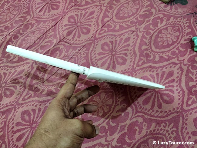 Full plastic exterior built but feels tough. It is really light weight, slim and it is a fan less design. All white mat finish theme, really slim built, this one will fit right into a modern apartment or flat. Your family will not complain at all if you decide to place it in your living room. This router will fit right into any room or desk where you decide to place it. Air vents are given at bottom for passive cooling and following are the back port layout starting from left to right as shown in the above image, Reset button / 1 x WAN Port (Color coded Blue) / 2 x LAN Ports (Color Coded Black) / Power Adapter port.