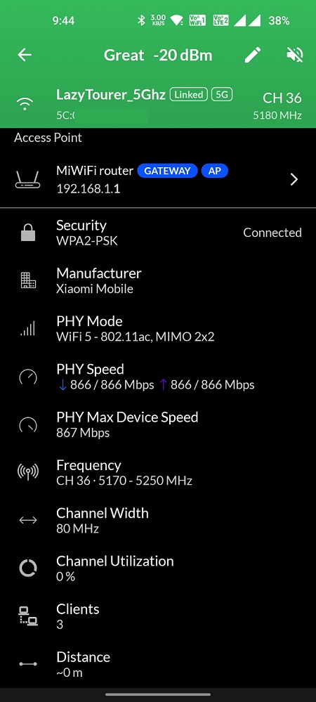 • Test 1 -> Signal strength using android app WiFi Man on OnePlus 8T